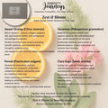 Sweet Orange awakens. Fennel clears. Geranium balances. Clary Sage grounds.